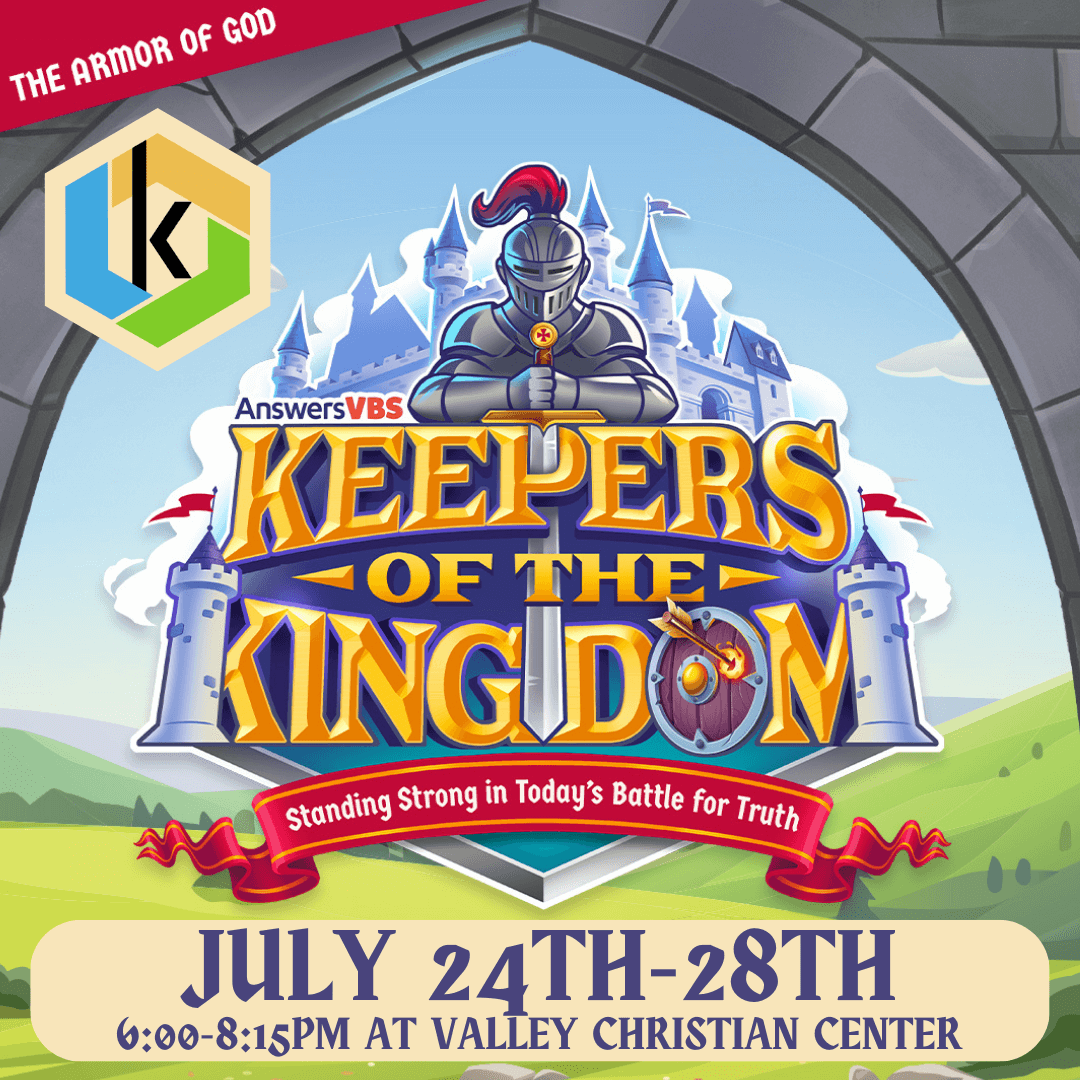 Grab your armor and your trusty steed and get ready for a merry time as we travel back to the time of castles and dragons! Kings, queens, knights, jesters—all are welcome to attend! At VBS, we’ll fill your tummy with fine victuals as you learn how to put on the armor of God! Keepers of the Kingdom will be an adventure filled with excitement, so sign your pre-k through 5th grader up today! July 24th-26th from 6:00-8:15pm at Valley Christian Center.